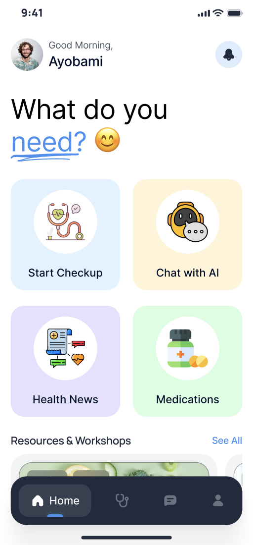 At Somalens, we've designed our platform with a range of key features that make it quick and easy to manage your health. Our health care assitant provides you with a companion to share your health concerns with and get answers. We offer a chat assistant powered by powerful AI algorithms to deduce your symptoms and proffer a quick diagnosis of what you are feeling, offer suggestions from quick home remedies, accessible medication and references to expert licensed physicians depending on the nature of your symptom. We also record the conversations so it can be revisited when similar symptoms occur.